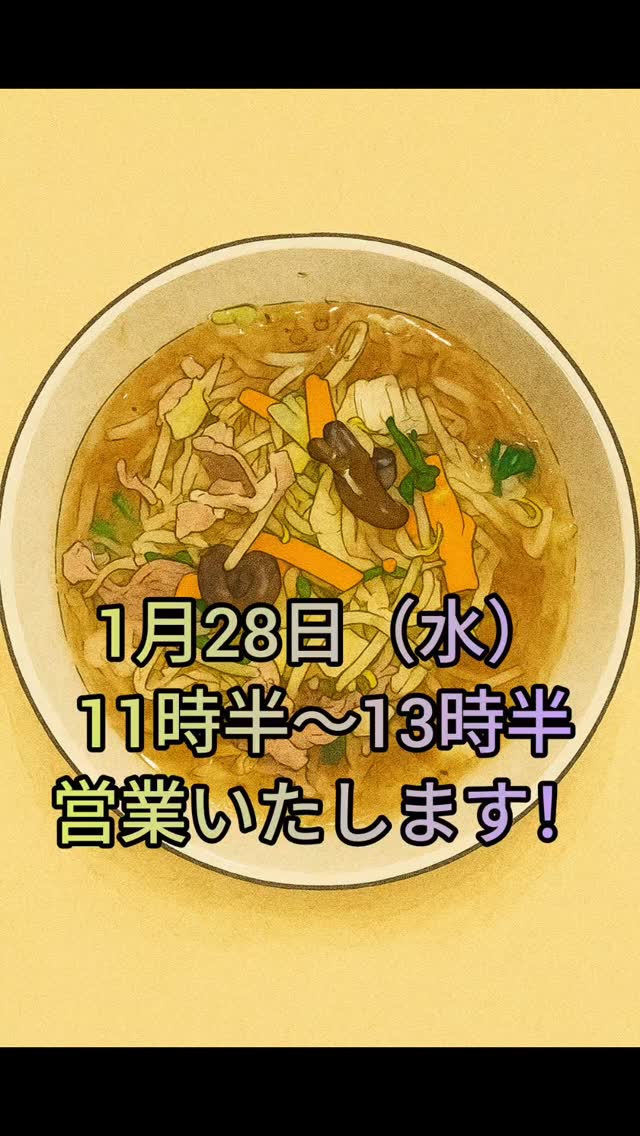 こんばんは! 明日今年初の水曜日営業します! 水曜日にしか来れない方は是非この機会に召し上がってみてください! 大人気の 「野菜たっぷりタンメン」 も販売します! #潟食 #タンメン